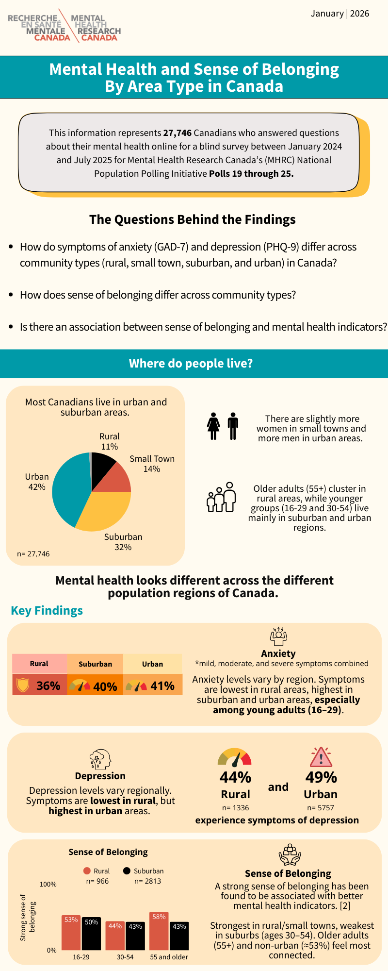 This information represents 27,746 Canadians who answered questions about their mental health online for a blind survey between January 2024 and July 2025 for Mental Health Research Canada’s (MHRC) National Population Polling Initiative Polls 19 through 25.
